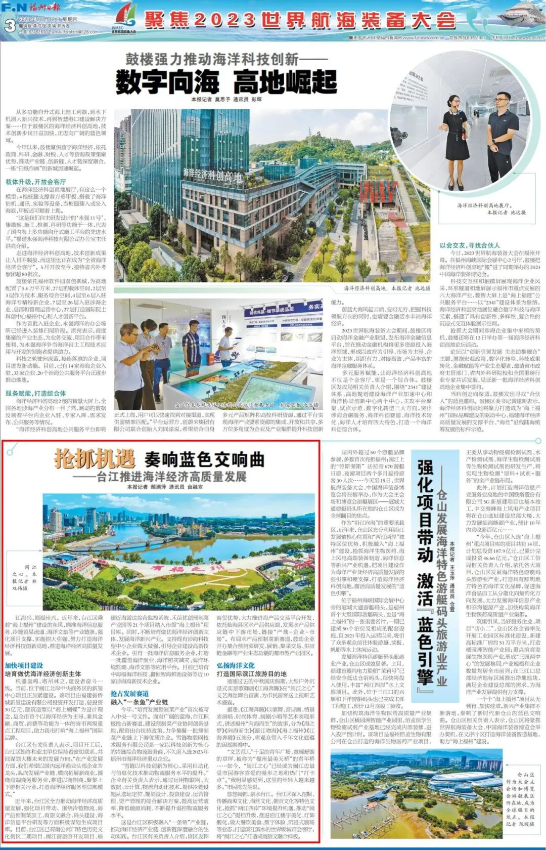 加快项目建设 培育做优海洋经济创新主体 机器轰鸣,塔吊林立,建设者奋斗一线。当前,位于闽江北岸中央商务区的新玺中心项目正加紧建设。该项目由福建省侨城新玺建设有限公司投资开发打造,总投资30亿元,建筑造型以“海上蝴蝶”为设计理念,是全市首个以海洋经济为主导,兼具金融、商贸、消费等功能为一体的省市两级重点工程项目,助力我市打响“海上福州”国际品牌。 台江区有关负责人表示,项目开工后,台江区始终和业主单位保持着密切联系,共同谋划大楼未来的发展方向。“在产业发展方面,我们希望以国内远洋渔业头部企业为龙头,纵向发展产业链、横向拓展新商业,围绕高端商务服务业,推进以商招商,聚集上下游相关行业,打造海洋经济服务型总部模式。” 近年来,台江区全力推动海洋经济高质量发展,强化项目带动,围绕冷链物流、海产品预制菜加工、商旅文融合、码头建设、海洋信息平台研发等方面积极谋划生成项目库。目前,台江区已有南公河口特色历史文化街区二期项目、闽江游旅游开发项目、福建近海雷达综合监控系统、禾苗优创预制菜产业园等21个项目纳入市级“海上福州”项目库。同时,不断培育做优海洋经济创新主体,发展海洋新兴产业。支持现有涉海科技型中小企业做大做强,引导企业建设高新技术企业。引育一批海洋信息服务企业,打造一批覆盖海洋渔业、海洋防灾减灾、海洋环境监测、海洋文旅等应用平台。目前已培育中海福海洋科技、鑫恒智海鲜池设备等近10家涉海高新技术企业。 抢占发展赛道 融入“一条鱼”产业链 今年,“培育发展预制菜产业”首次被写入中央一号文件。面对广阔的蓝海,台江积极抢占新赛道,建设预制菜产业协同创新基地,配套出台扶持政策,力争集聚一批预制菜产业链上下游优质企业。雪链物联网技术服务有限公司是一家以科技创新为核心的冷链综合物流服务商,不久前入选2023年福州市海洋经济重点企业。 “雪链以科技创新为核心,采用自动化与信息化技术推动物流服务水平的提升。”企业有关负责人表示,通过运用物联网、大数据、云计算、物流自动化技术,提供冷链设施从选址定位、规划设计、投资建设、运营管理、资产管理的综合解决方案,提高运营效率、降低能源消耗,不断提升温控物流服务水平。 这是台江区积极融入“一条鱼”产业链,推动海洋经济产业链、创新链深度融合的生动实践。台江区有关负责人介绍,该区发挥商贸优势,大力推进海产品交易平台开发,依托临海县区水产品供应端,发展水产品供应链中下游市场,链接“产地-企业-市场”。布局水产品预制菜新赛道,鼓励企业开办集合预制菜研发、展销、集采交易、供应链金融等产业生态功能的都市型产业园区。 弘扬海洋文化 打造国际滨江旅游目的地 刚刚过去的中秋国庆假期,大型户外沉浸式实景歌舞剧《江海奔腾》在“闽江之心”文艺海丝舞台首演,为市民游客送上视听艺术盛宴。 据悉,《江海奔腾》以歌舞、音诗画、情景表演唱、时尚体育、闽剧小唱等艺术表现形式,讲述福州“向海而生”的故事,分为《海之梦》《向海而生》《派江吻海》《海上福州》《江海奔腾》五部分,将观众带入千年文化底蕴的闽都画卷中。 “文艺范儿”十足的青年广场、宽阔舒朗的草坪、被称为“福州最美天桥”的青年桥……如今,“闽江之心”已经成为闽江边最受市民游客喜爱的漫步之地和热门“打卡点”。“我明显感觉到,这里的年轻人越来越多。”市民陈先生说。 悠悠闽都,亲水台江。台江区深入挖掘、传播商埠文化、海丝文化、朝贡文化等特色文化,抢抓“两江四岸”环境提升机遇,推动“闽江之心”提档升级,推进沿江楼宇美化、灯饰靓化,做大餐饮美食、数字体验、沉浸式剧场等业态,打造滨江滨水的世界级城市会客厅,将“闽江之心”打造成商旅文融合样板。 福州晚报整版报道台江 《台江:抢抓科创走廊发展新机遇 融入“海上福州”建设大格局》 台江区面积仅18平方公里,不靠海,发展海洋经济靠什么?台江区交出了一份漂亮的答卷——抢抓科创走廊发展机遇,努力打造海洋经济科创高地,主动融入“海上福州”建设,促进海洋新兴产业项目建设提速增效。 俯瞰闽江之心。 培育做优创新主体 发展海洋新兴产业 企业人员展示雪链智慧冷库系统。 海洋经济发展,离不开创新主体。当前,台江区从培育做优海洋经济创新主体入手,发展海洋新兴产业。 “台江区支持现有涉海科技型中小企业做大做强,引导建设高新技术企业。瞄准海洋信息服务、冷链贸易流通、海洋文旅等产业上下游,实施招大引强。”台江区金融科技局有关人士介绍,目前,台江区已培育中海福海洋科技、鑫恒智海鲜池设备等近10家涉海高企,完成南海环境监测中心、雪链智慧冷库系统等项目。 位于台江区宇洋中央金座的雪链物联网技术服务有限公司入选2023年福州市海洋经济重点企业。 该企业聚焦运用物联网技术实现冷库的智慧化管理,通过运用先进的智能物联网、云计算、大数据、人工智能融霜控制等技术,打造冷库资产智慧化健康管理PHM软件平台,为分布在全国多城市的集团冷库资产提供数字化、可视化、集中化智慧运维管理服务,实现冷库制冷系统设备故障的智能诊断、预测性维护,有效保障冷库资产的安全节能和健康。据该公司负责