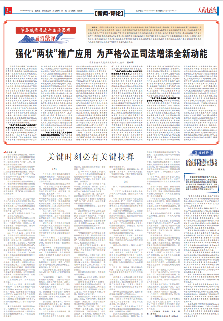 2025年是确立习近平法治思想在全面依法治国中的指导地位五周年。为进一步学习贯彻习近平法治思想的核心要义、丰富内涵、实践要求,集中展现在习近平法治思想引领下法治中国建设的新成效,人民法院报二版开设重要评论栏目“学思践悟习近平法治思想•前沿法评”。本栏目立足时代前沿、法治前沿,聚焦党中央最新决策部署和习近平总书记最新重要讲话精神尤其是关于法治建设的重要指示要求,紧密结合国家最新出台的法律法规以及最高人民法院最新工作部署、最新出台的司法解释和司法文件等,邀请法学理论界和司法实务界的知名专家学者和有关领导,及时撰文进行评论发声,大力弘扬和传播社会主义法治正能量,为推动法治中国建设、助力实现中国式现代化,汇聚智识力量,营造良好的舆论氛围。敬请关注!
