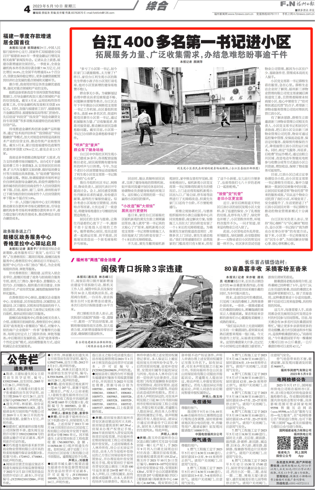台江区有关负责人表示,坚持“用心倾听”与“尽心解决”相结合,是小区第一书记践行“我为群众办实事办好事”的有效方法。接下来,小区第一书记将继续关注“民生小事”,为居民解决好操心事、烦心事和揪心事。