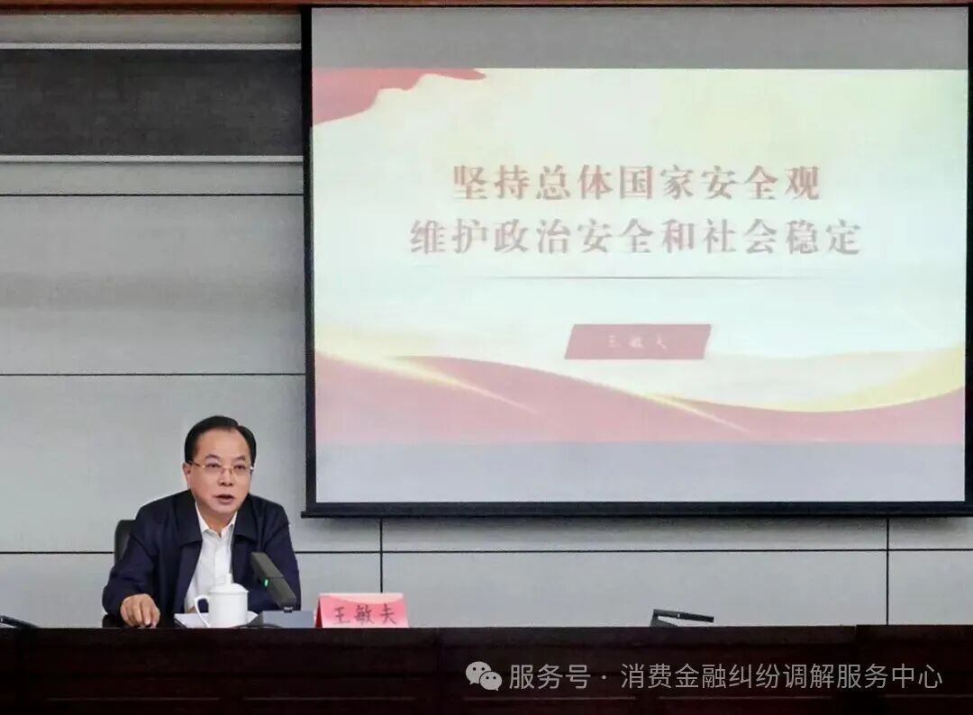 王敏夫结合学习贯彻党的二十届四中全会精神,从“总体国家安全观的丰富内涵”“国家安全面临的形势”“维护政治安全和社会稳定”三个方面,深刻阐释了总体国家安全观的丰富内涵、核心要义和实践要求。