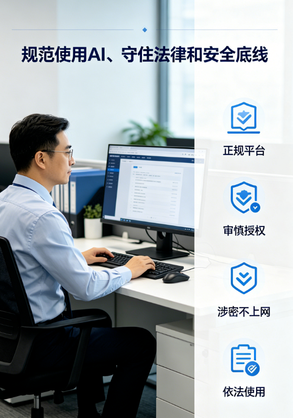 3.筑牢保密红线。严格遵守“涉密不上网,上网不涉密”的原则,严禁连接互联网使用AI应用处理国家秘密。工作中的机密文件、国家秘密、敏感政务数据,坚决不输入任何AI应用。