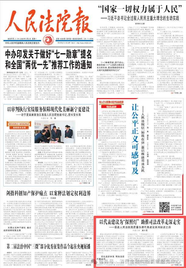 最高人民法院紧扣代表关注的知识产权保护、立案监督、律师执业权利保障等司法实践重点问题,精准回应诉求,把代表建议转化为优化组织体系的具体举措,让司法服务更精准、更高效。